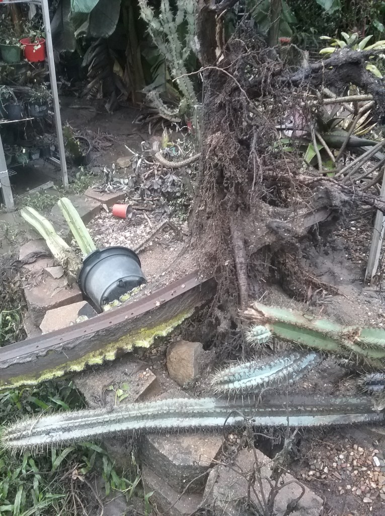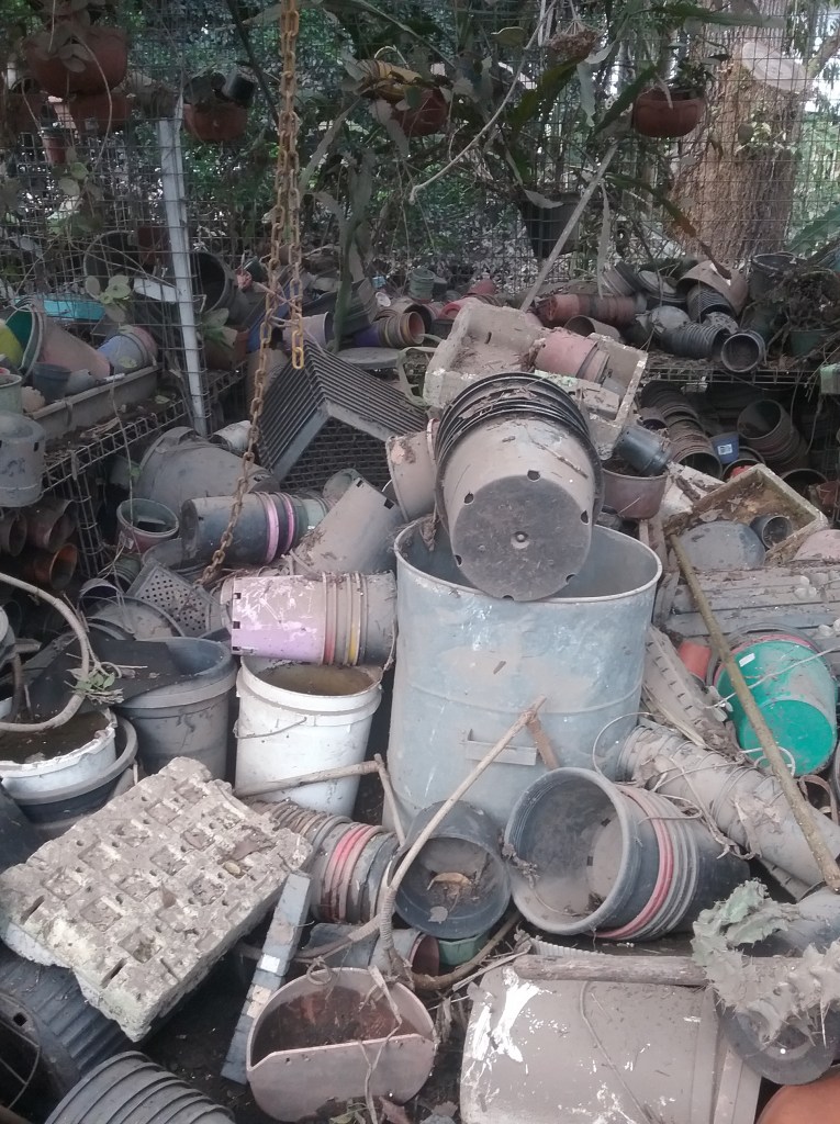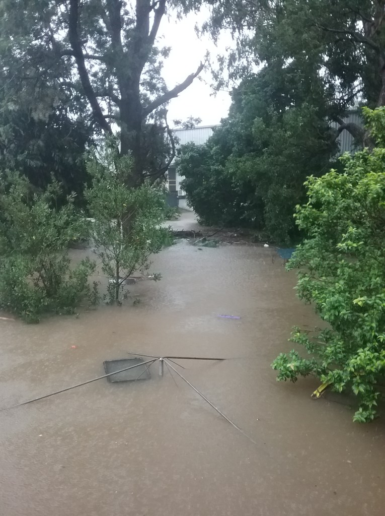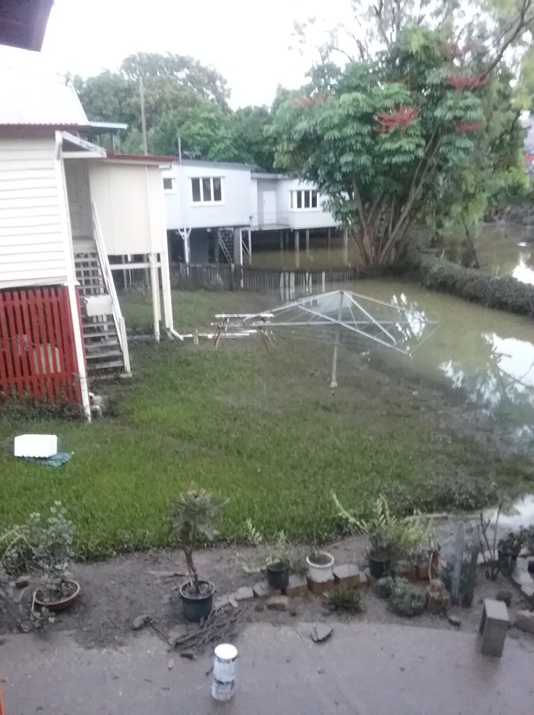 The 2022 flood. The 1974 flood reportedly came to the floorboards. Flood mitigation would supposedly take 1m off a 1974 flood. As the 2022 flood stopped 20cm from the floorboards, it was a big flood. In the first photo, my shade house is completely under. The second is a view towards my neighbours. In September 2022, the flats in the distance are still abandoned. All the plants in the third photo died – as did a great many others. Inside the shade house. Saw-horses in the clothes’ line. Two of the three washing machines that sailed around with a saw-horse perched in a cactus.
